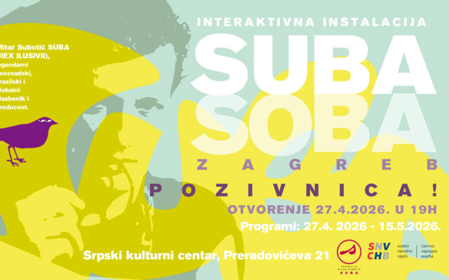 Multimedijalni projekt „SUBAsoba“ stiže u Zagreb! Srpsko narodno vijeće u prostorima Srpskog kulturnog centra Zagreb (Preradovićava 21) i Kulturno informativnog centra (Preradovićeva 5) od 27. aprila do 15. maja ugošćuje …