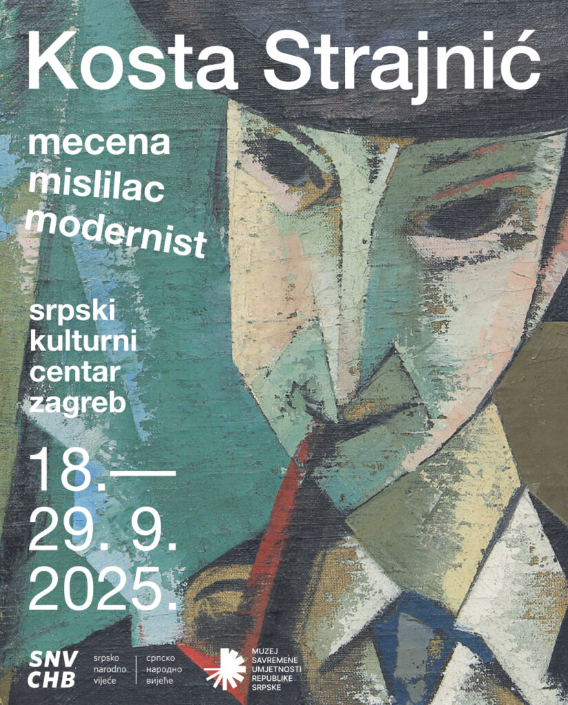 U suradnji s Muzejom savremene umjetnosti Republike Srpske iz Banja Luke organiziramo zagrebačku izložbu „Kosta Strajnić – mecena, mislilac, modernist”. Izložba se otvara u četvrtak (18 sati), 18. septembra, i trajat će do 29. septembra 2025. Uz otvorenje izložbe, naš Odjel za kulturu organizirao je vođenje kroz izložbu, i to u dva termina, 19. septembra, 18 sati i 20. septembra 2025., u 11 sati.