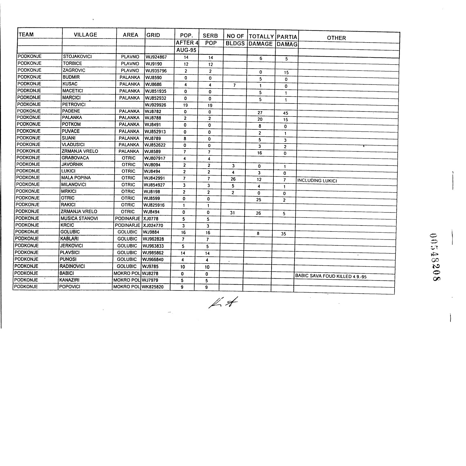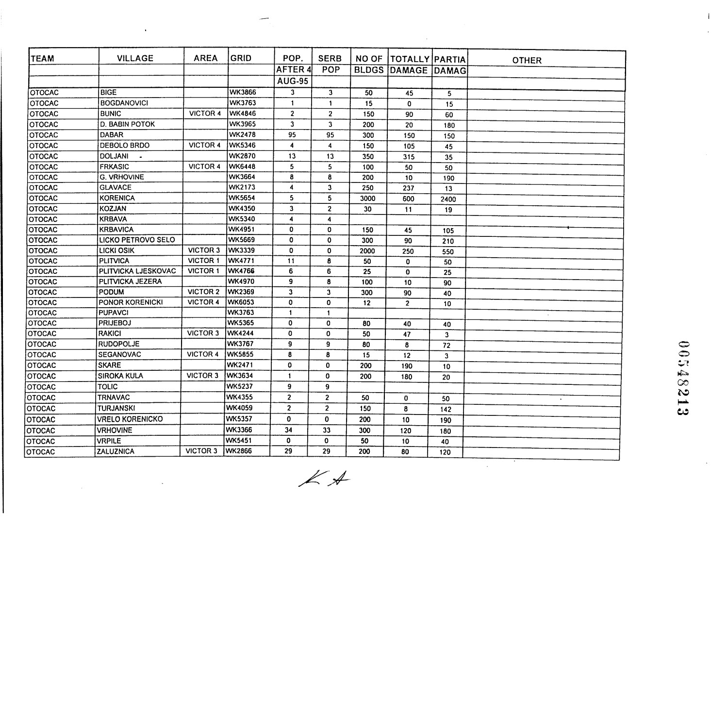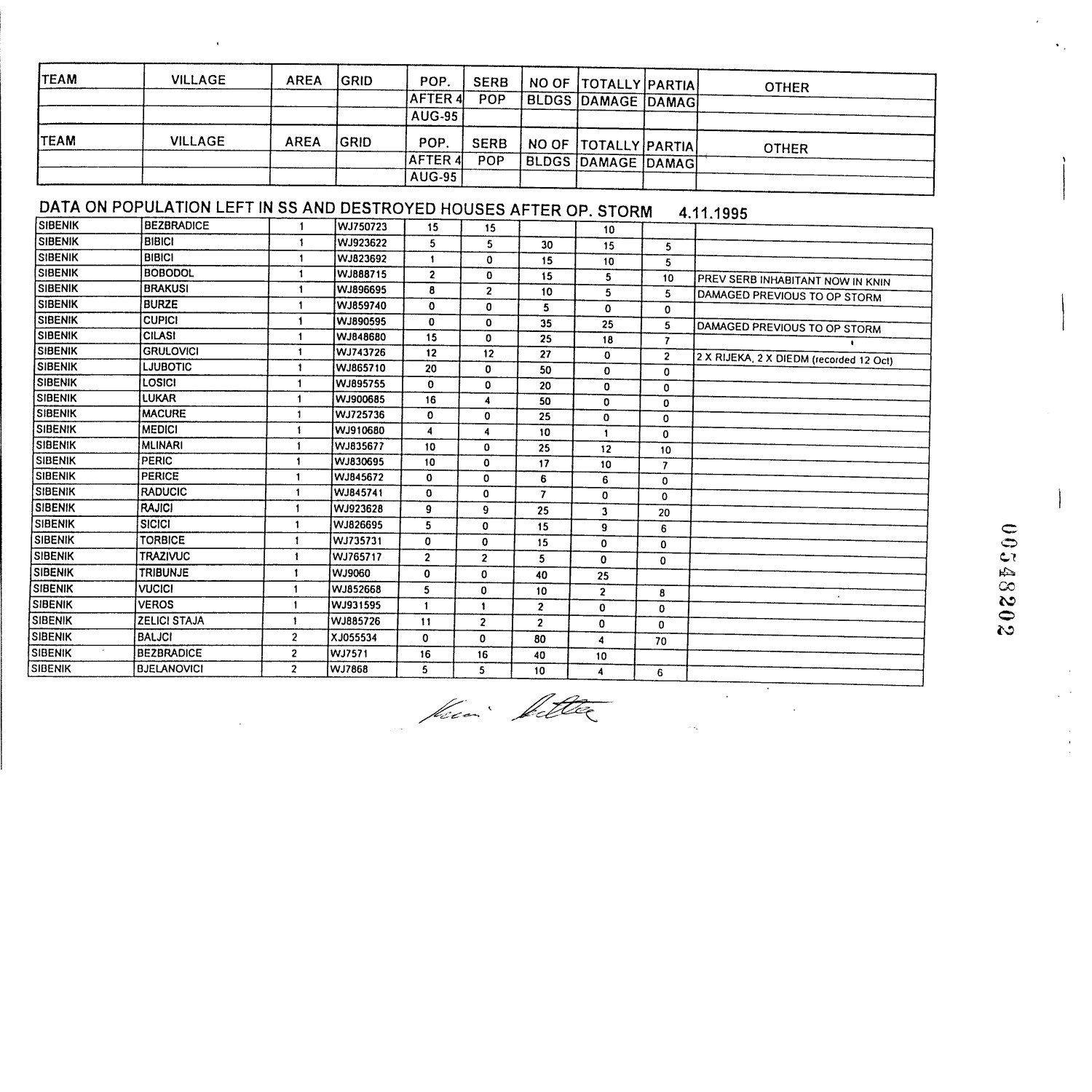 Po izvještaju vojnih promatrača UN-a od 4. studenog 1995. na području „Krajine“ je od 22.213 kuća djelomično ili u potpunosti uništeno njih 17.270.