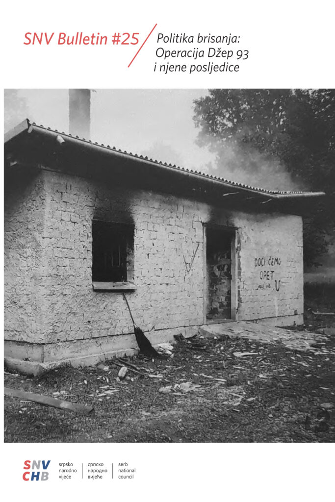 Bilten Politika brisanja: Operacija Džep 93 i njene posljedice bavi se analizom počinjenih ratnih zločina i kršenja ljudskih prava tijekom vojno-redarstvene operacije Hrvatske vojske Džep 93, koja je provedena između 9. i 17. rujna 1993. godine. Iz te perspektive pokušalo se precizno opisati područje na kojemu je akcija provedena i prikazati vremenski raspored događanja na terenu po danima. Analizirali su se svi segmenti zapovjedne odgovornosti koji su funkcionirali na nekoliko paralelnih razina, a unutar kojih se nastojala utvrditi odgovornost za počinjenje zločina.